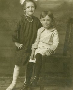 At some point, I need to scan the wedding photo I have of my mom’s parents, but for now, here’s my grandma and her little brother. I love these old photos, and I love seeing the child version of the gray-haired woman I knew, for much too short a time. (I think she would have been startled to realize that her daughter would also die of cancer, at an even younger age; my mom lost her battle with pancreatic cancer a week to the day before she would have turned 65. I comfort myself that I had my mom in my life five years longer than my own mother had hers. But as my aunt said to me just last night, it’s always too early to lose your mom. Amen.)