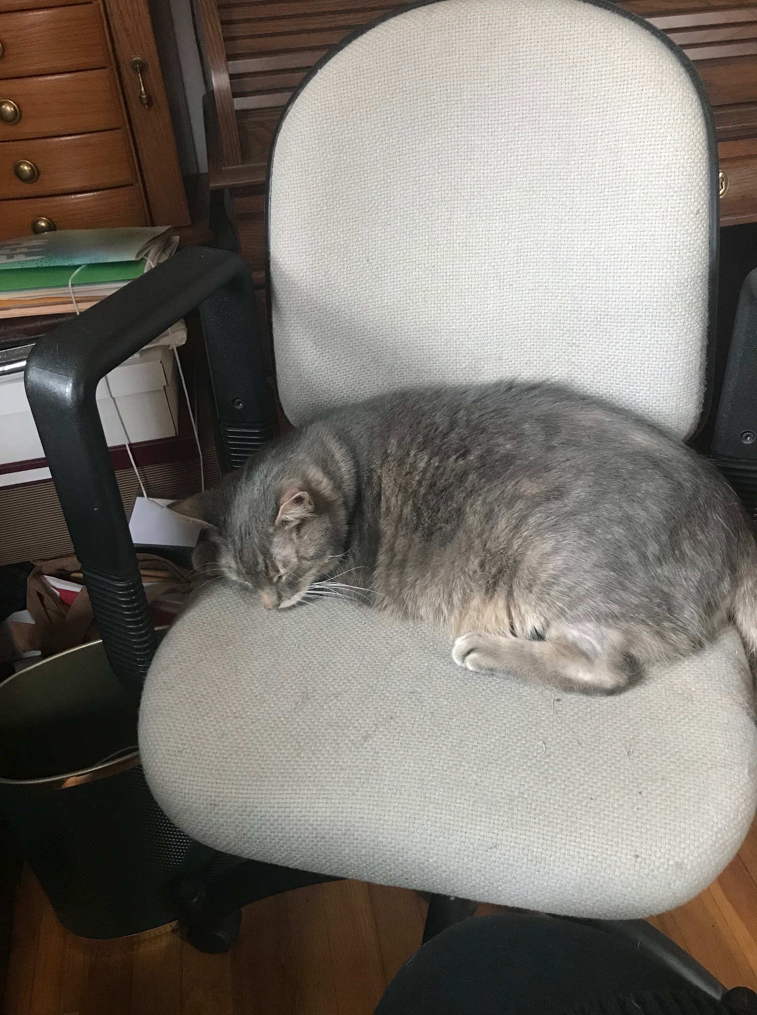 Nearly three weeks later, here I am, typing this letter to you on that very computer, with my furry “coworker” dozing in the chair beside me.